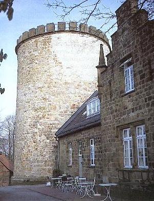 Burg Ravensberg Eine weitere Sehenswürdigkeit bei Borgholzhausen ist der noch vorhandene Turm der ehemaligen Ravensburg - seine Besonderheit: er ist oval und nicht rund. Von seiner Höhe hat man einen sehr schönen Rundblick. Die Ravensburg, eine Höhenburg aus den 12. Jh., erneuert 1646, Stammsitz der ehemaligen Grafen von Ravensberg-Calvelage, war neben der Sparrenburg bei Bielefeld, der Limburg bei Preußisch Oldendorf und dem Amtshausberg bei Vlotho eine der 4 Höhenburgen des Ravensberger Landes.