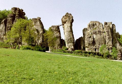 Externsteine Als Natur- und Kulturdenkmal ist die monumentale Felsengruppe der Externsteine in dem gleichnamigen Naturschutzgebiet bei Horn-Bad Meinberg eine der größten Sehenswürdigkeiten des Teutoburger Waldes und ein viel besuchtes Ausflugsziel. |
